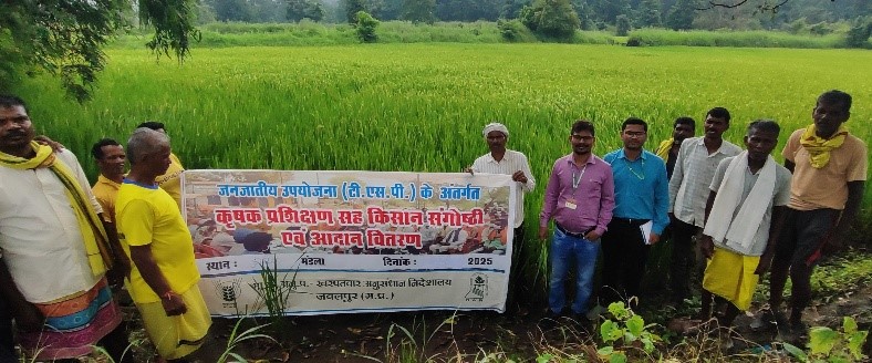 The TSP Implementation team of ICAR-Directorate of Weed Research, Jabalpur, conducted a visit and monitoring of activities under the TSP programme at Dugariya village of Mandla District on 18 September 2025. During the visit, farmers shared highly satisfactory feedback on the technologies implemented by ICAR DWR Jabalpur under the TSP programme.