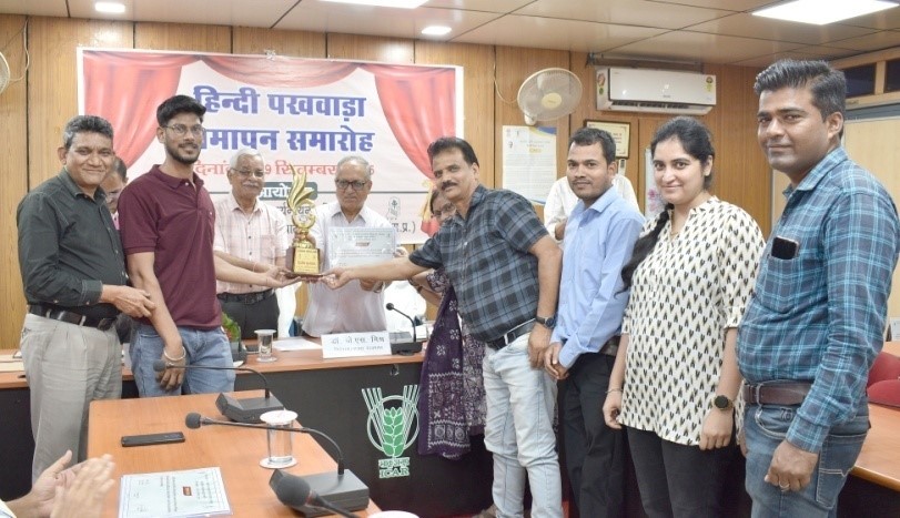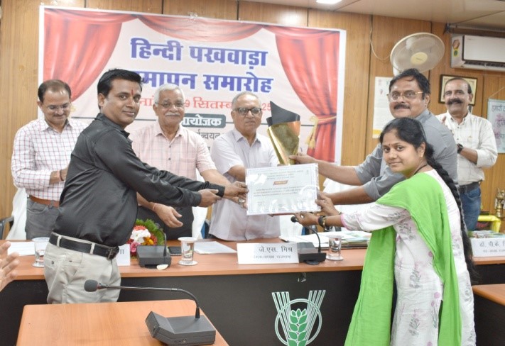 निदेशक एवं मुख्य अतिथि के कर कमलों से प्रोत्साहन योजना के तहत निदेशालय में वर्ष भर 20,000 से अधिक हिन्दी शब्द लिखने वाले अधिकारियों/कर्मचारियों को प्रथम, द्वितीय, तृतीय नगद पुरस्कार एवं प्रतियोगिताओ के विजेता को प्रशस्ति पत्र प्रदान किये गये। इस अवसर पर निदेशालय के हिन्दी प्रकाशन “तृण संदेष“, “खरपतवार समाचार“, “निदेषालय की महत्वपूर्ण उपलब्धियॉ“ एवं विस्तार पत्रिका रबी फसलो में खरपतवार प्रबंधन का विमोचन किया गया। मुख्य अतिथि ने अपने संबोधन में कहा कि भाषा कि सुदंरता उसके वैविध्य में है। हिन्दी स्वंतत्रता संग्राम से ही हमारी सम्पर्क भाषा रही है इसलिए इसे राजभाषा के रूप में अंगीकृत किया गया है। भाषा एक दूसरे की सहेलियां है, यह हमें आपस में जोड़ती है। भाषा प्रेम एवं संवाद का माध्यम होती है इस दृष्टि से हमारी हिन्दी भाषा समृद्ध एवं प्रभावशाली है।