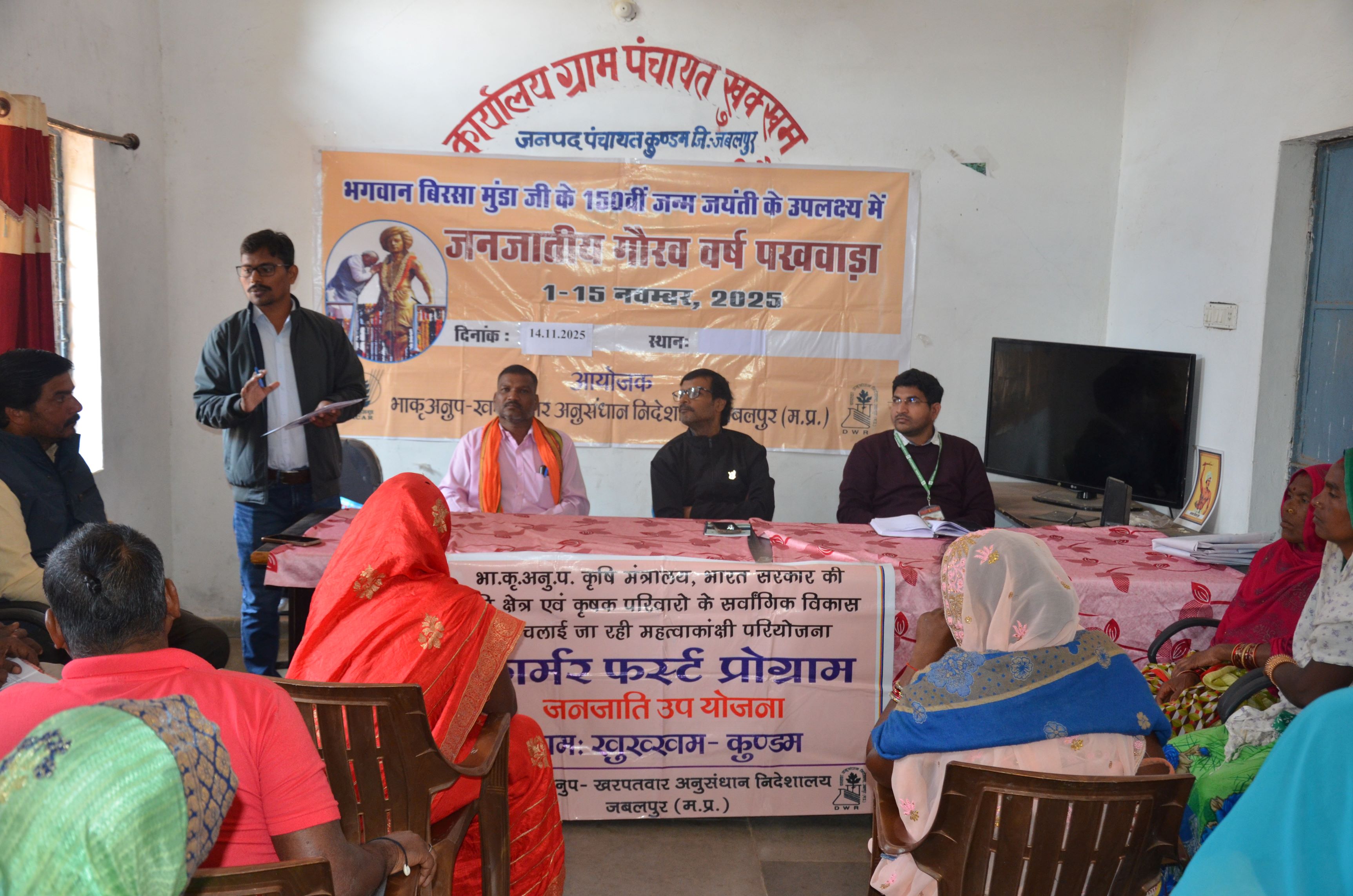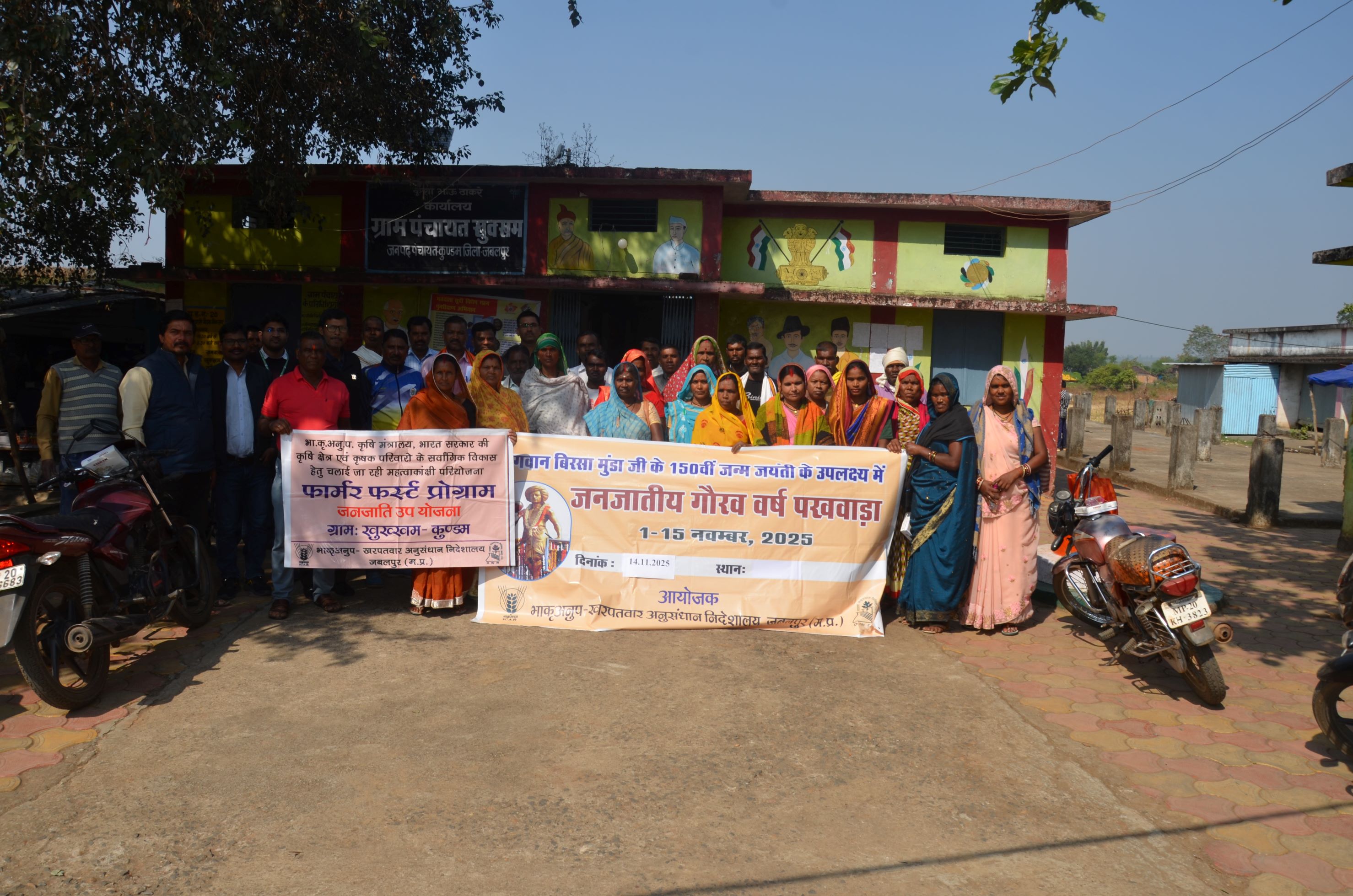 As part of Janjatiya Gaurav Varsh Pakhwada 2025-an initiative aimed at celebrating tribal heritage and strengthening livelihood opportunities, an awareness and farmer-scientist interface meeting on establishing Tribal Farmers’ Markets for direct sale of produce, feedback of the farmers on hybrid rice production and weed management, and upcoming activities of Farmer FIRST Programme (FFP), were organised on 14 November 2025 at Khukkham village, Kundam block, Jabalpur, under the Farmer FIRST Programme.