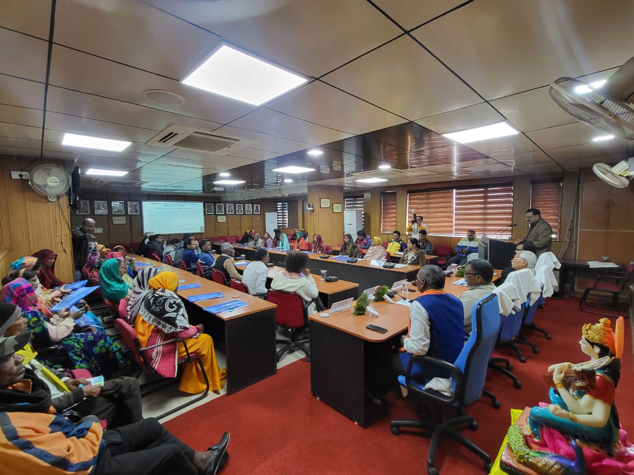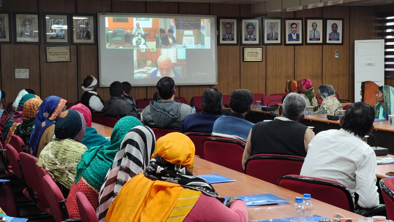 The programme commenced with a welcome address by Dr. P. K. Mukherjee, Pr. Scientist and PI (FFP). This was followed by an informative lecture by Dr. P. K. Singh, Principal Scientist and In-charge, PME, on the Viksit Bharat–G RAM G Act 2025, highlighting its objectives, key provisions, and potential benefits for rural livelihoods and employment generation. The event also featured online streaming of addresses by the Hon’ble Union Minister of Agriculture, Shri Shivraj Singh Chouhan, who emphasized the significance of Kisan Diwas and the crucial role of farmers in nation building. The Hon’ble Minister also highlighted the salient features of the Viksit Bharat–G RAM G Act 2025 and its expected impact on rural employment, livelihoods, and agricultural development.