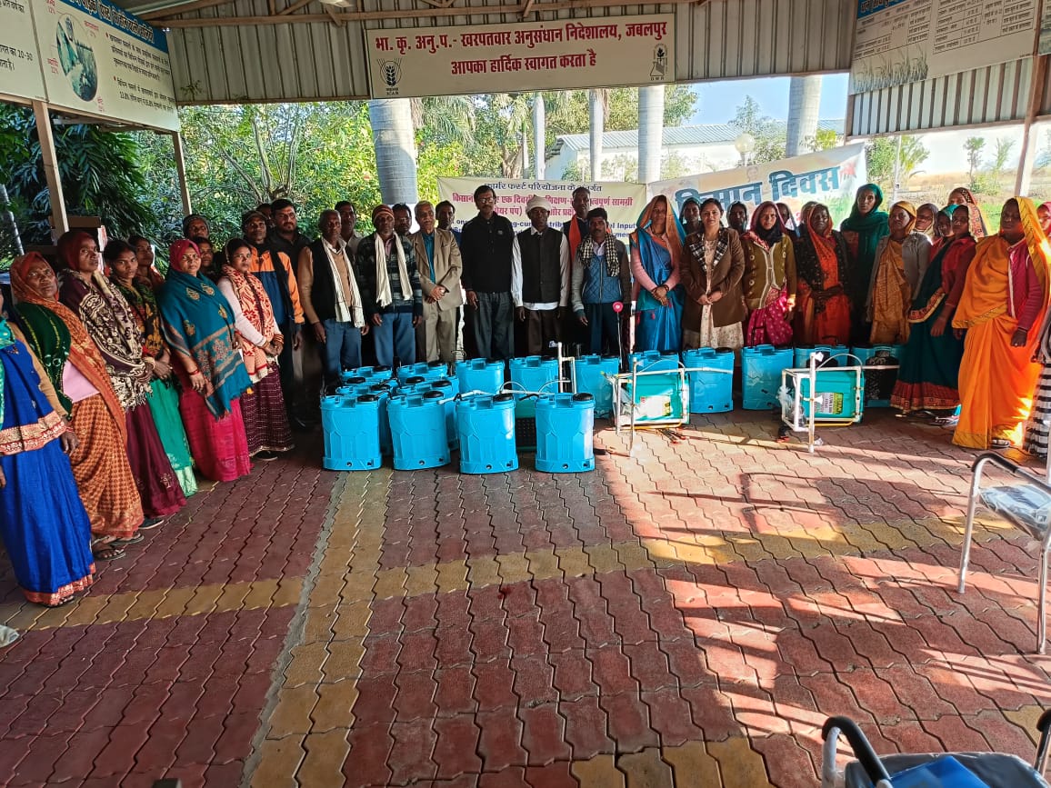 During the programme, literature on the Viksit Bharat–G RAM G Act 2025, improved weed management practices, natural farming, and improved agricultural practices was distributed among the participants. As part of the programme, sprayers were distributed as critical inputs to 35 farmers, including 26 women farmers, under the FFP, to facilitate timely and efficient crop protection. The gathering was further addressed by the Hon’ble Director, Dr. J. S. Mishra, who highlighted the importance of the Viksit Bharat–G RAM G Act 2025 in the context of field-level agricultural interventions and water conservation. The programme concluded with a vote of thanks proposed by Dr. Yogita Gharde, Senior Scientist, ICAR–DWR. After lunch, a field exposure visit was organized for the participating farmers at the Directorate.