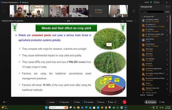 Training program on ‘Advances in Weed Management’ was jointly organized by NIPHM, Hyderabad and ICAR-DWR, Jabalpur in online mode from 17.02.2026 to 19.02.2026 (3 days).