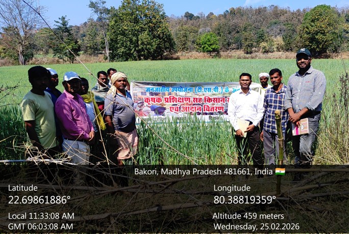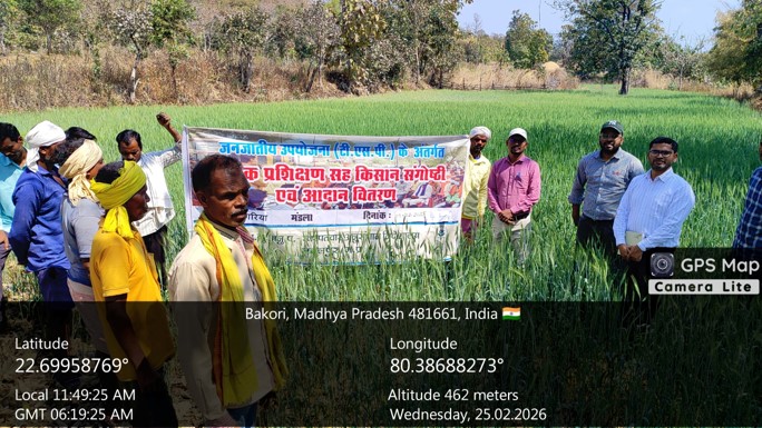 A monitoring-cum-farmer-scientist interaction programme was organized on 25 February 2026 at Dungaria village, Mandla district, under the Tribal Sub-Plan of ICAR-DWR, Jabalpur. The programme witnessed the active participation of 26 beneficiary farmers, including 19 male and 7 female farmers.