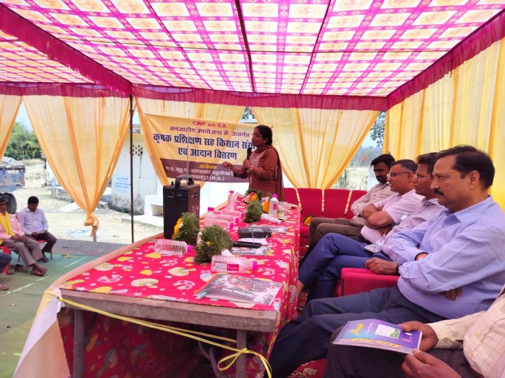 Technical sessions were conducted by Dr. S. K. Phulia, Dr. Ashok Kumar Belhara, Dr. Gururaj, and Dr. Aiswarya of ICAR-CIRB, Hisar, who provided guidance on buffalo and livestock management, including vaccination, deworming, feeding practices, and artificial insemination, along with other scientific recommendations. During the programme, essential agricultural and livestock inputs such as blackgram seeds, agrochemicals, biofertilizers, mineral mixtures, dewormers, and milk cans, along with utility items including torches, multi-purpose ghamelas, umbrellas, and bags, were distributed to 100 registered tribal farmers to support their farming, livestock and allied livelihood activities.